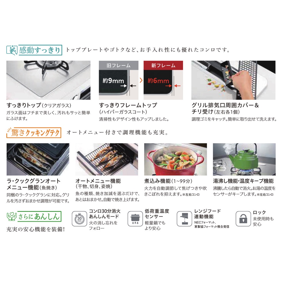 クリアガラストップ・マッティーブラック/水なし両面焼グリル/左右強火力/ラ・クックグラン同梱