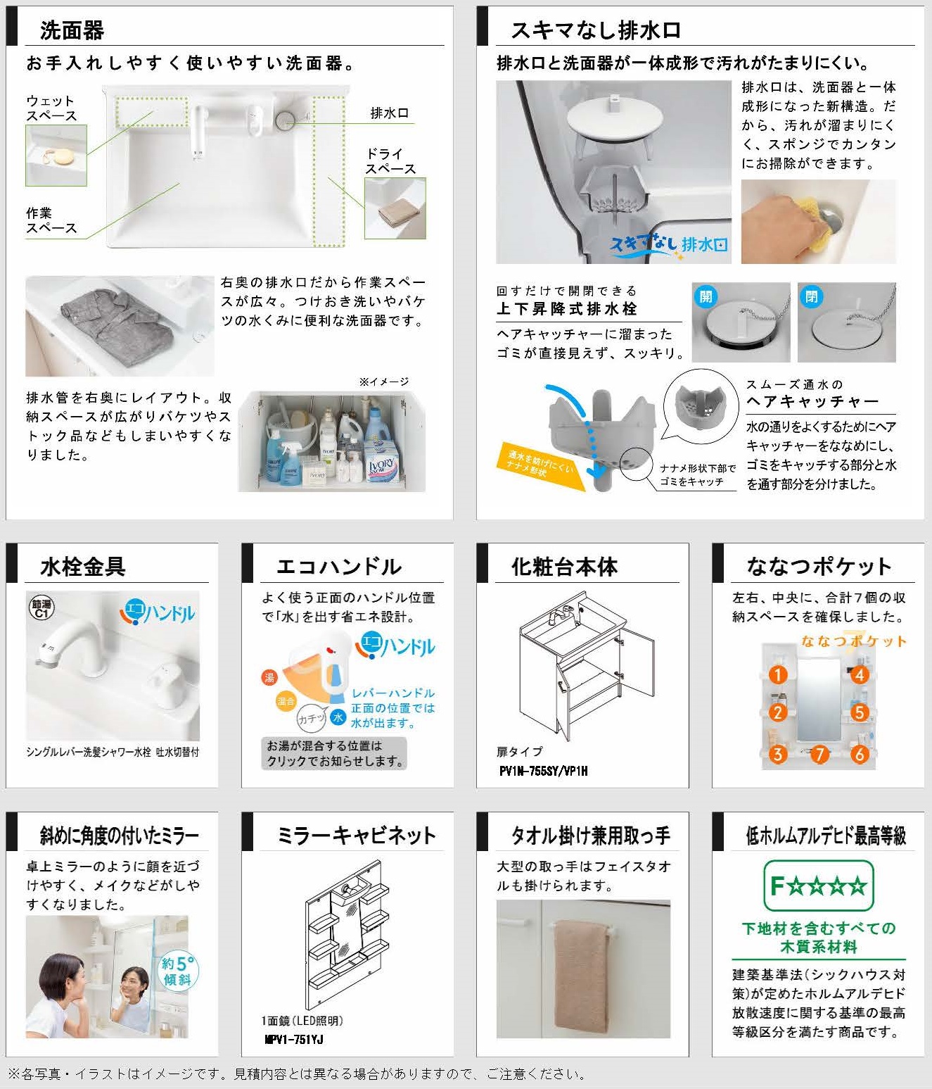 【LIXIL】洗面化粧台PV [間口750・1面鏡・LED照明] PV1N-755SY/VP1H+MPV1-751YJ